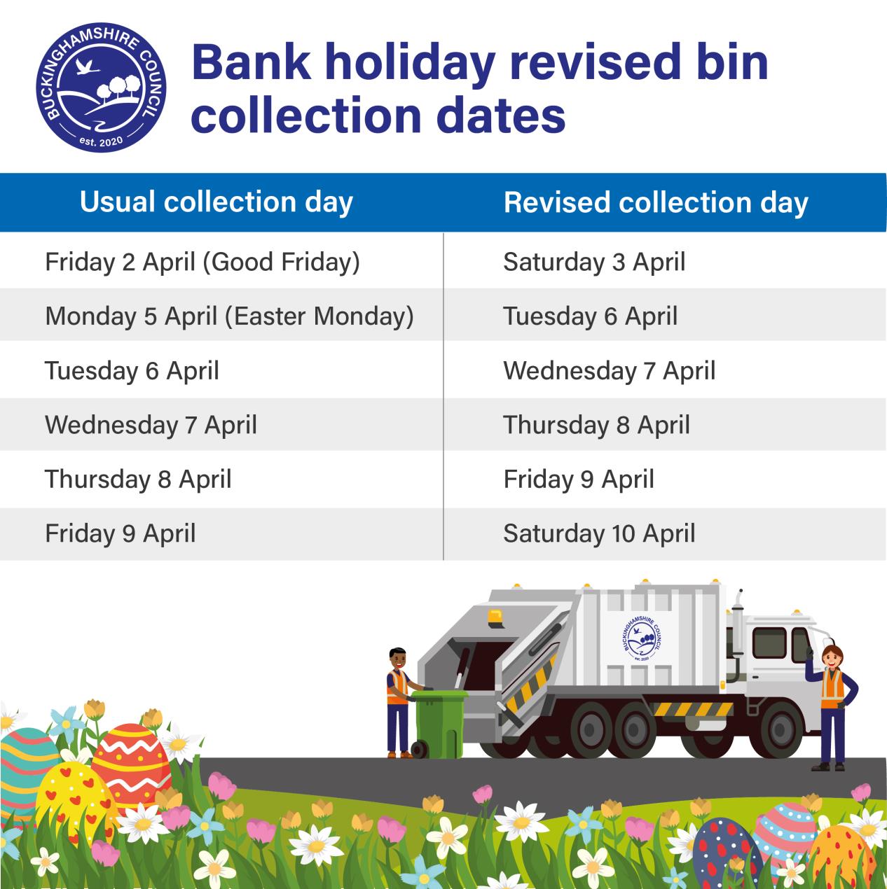 Easter Bank Holiday bin collections across Buckinghamshire Marlow